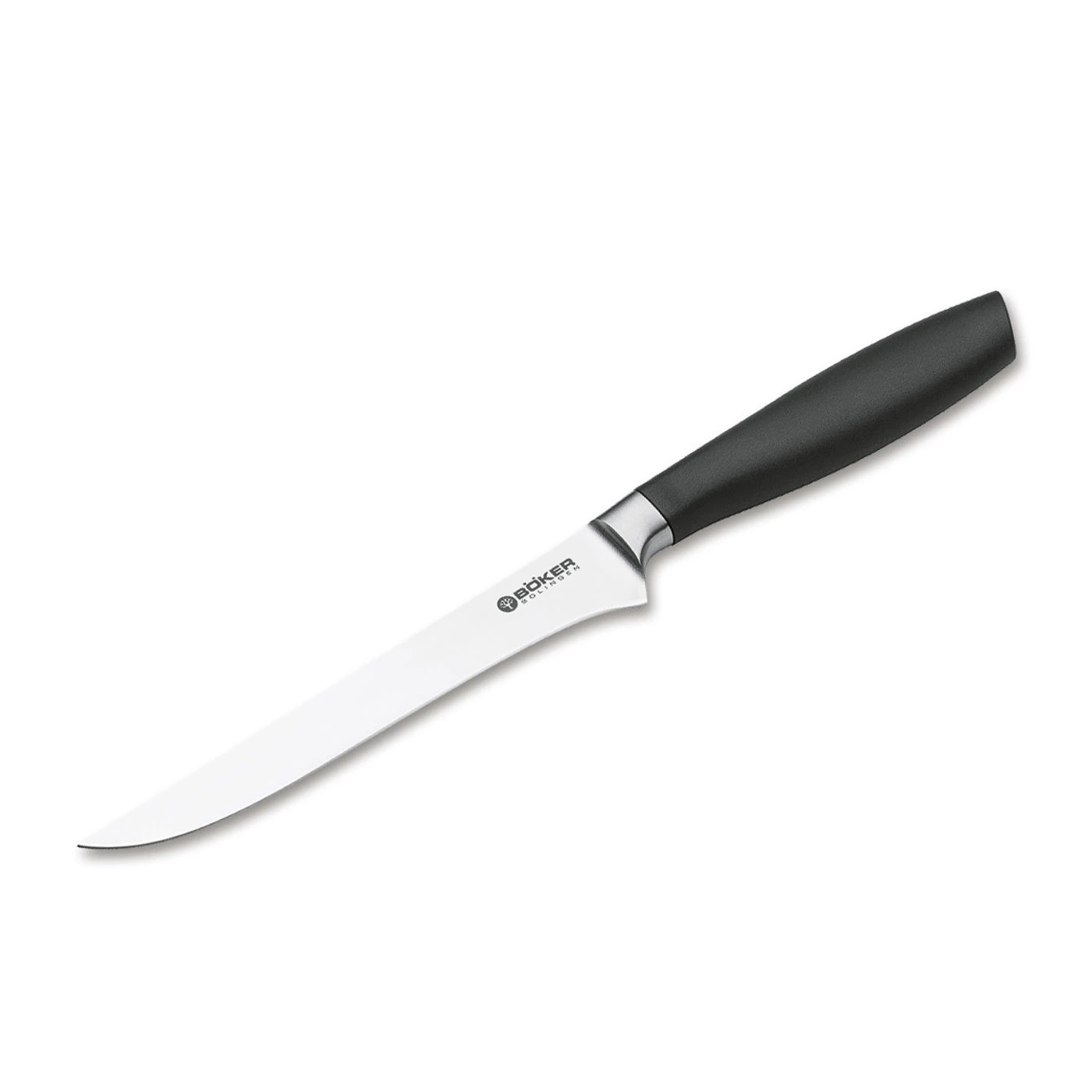We harnessed their decades of experience, excellent know-how and finely honed every day sense for the requirements and needs of cooking and kitchen enthusiasts in our product development of the Boker Core series, combined with our almost 150 years of experience as a Solingen Knife Manufactory. The results is a product with dynamic lines, excellent handling and breathtaking cutting capability that earned the quality rating “recommended by leading retailers”.