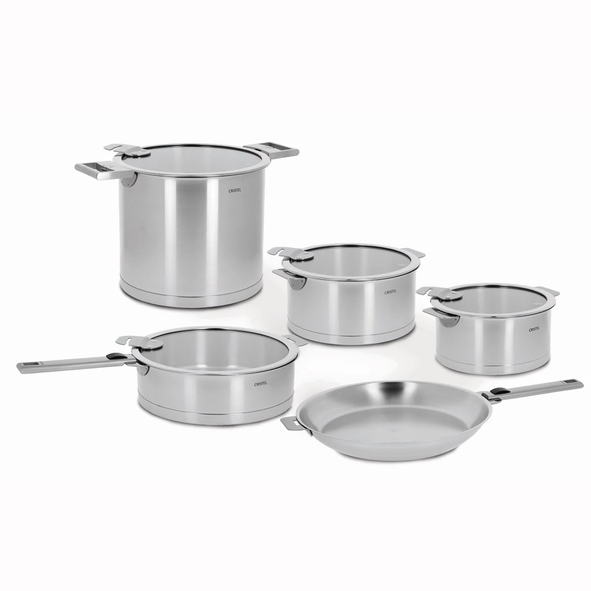Strate by Cristel – a collection of stainless saucepans and cookware with a clear-cut, streamlined design. With their brushed finish, products from the Strate collection are a must-have for modern kitchens. With a streamlined and efficient design, Strate is Cristel’s collection for cooking with induction. The wide high-sided base, which produces the distinctive straight profile, offers unrivalled heat diffusion.