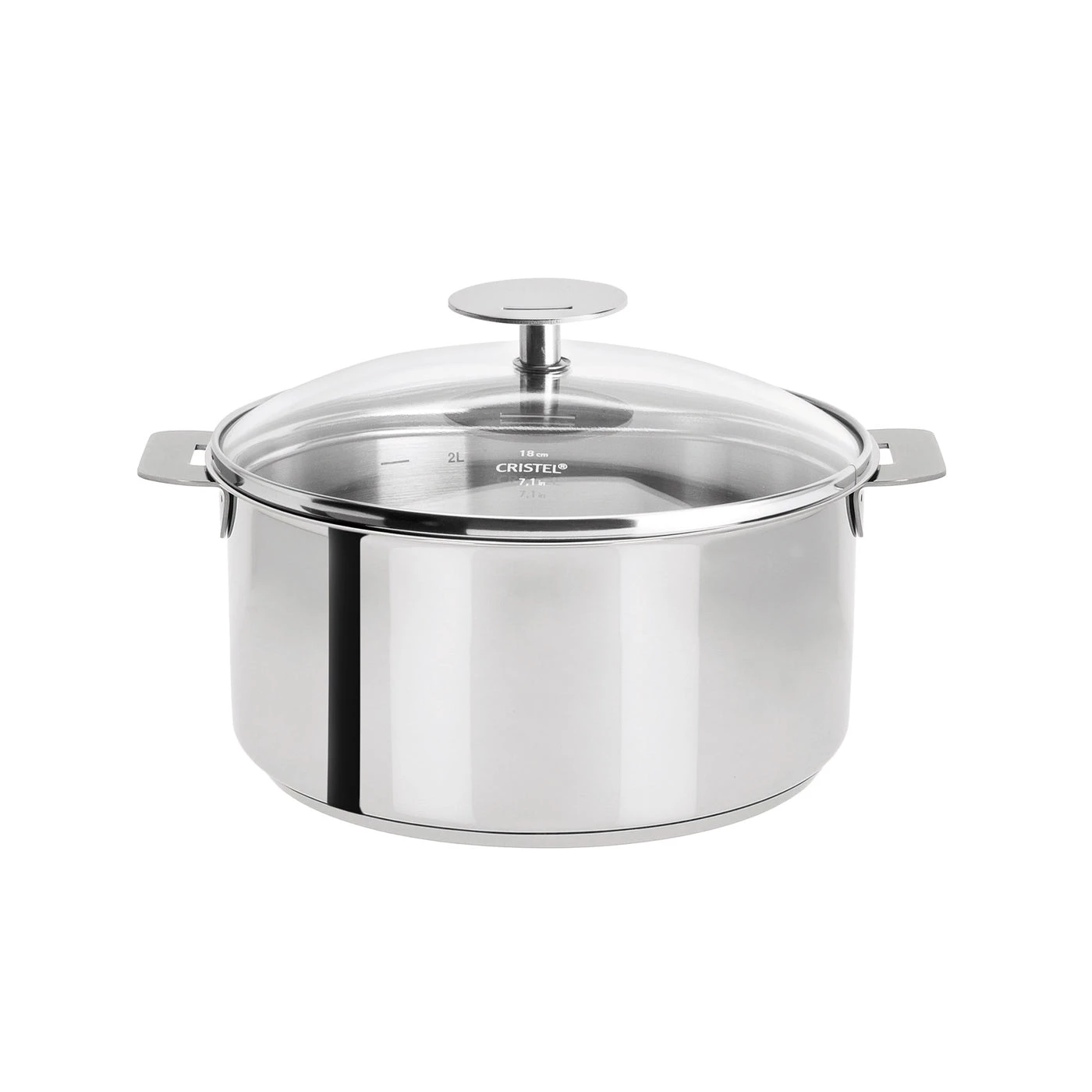 18/10 stainless saucepan, mirror finish, removable handle, from the Removable Mutine collection. Mutine 3 Qt Saucepan w/Lid is a must for your kitchen. The removable-handle concept enables perfect stacking of Cristel stock pots and saucepans, for significant space savings in your cupboards and dishwasher. Thanks to the efficiency of Cristel induction-compatible heat-diffusing base, Removable Mutine saucepans can be used in any kitchen and will be of valuable help for the preparation of your dishes. The practical removable-handle system lets you turn your stainless saucepan into a stock pot by replacing the handle with the grips. Mutine saucepans are made of 18/10 stainless steel. They preserve the taste of food and are easy to clean after use. Requires removable handles or grips – Sold Separately. – C20PK – 1 – A9
