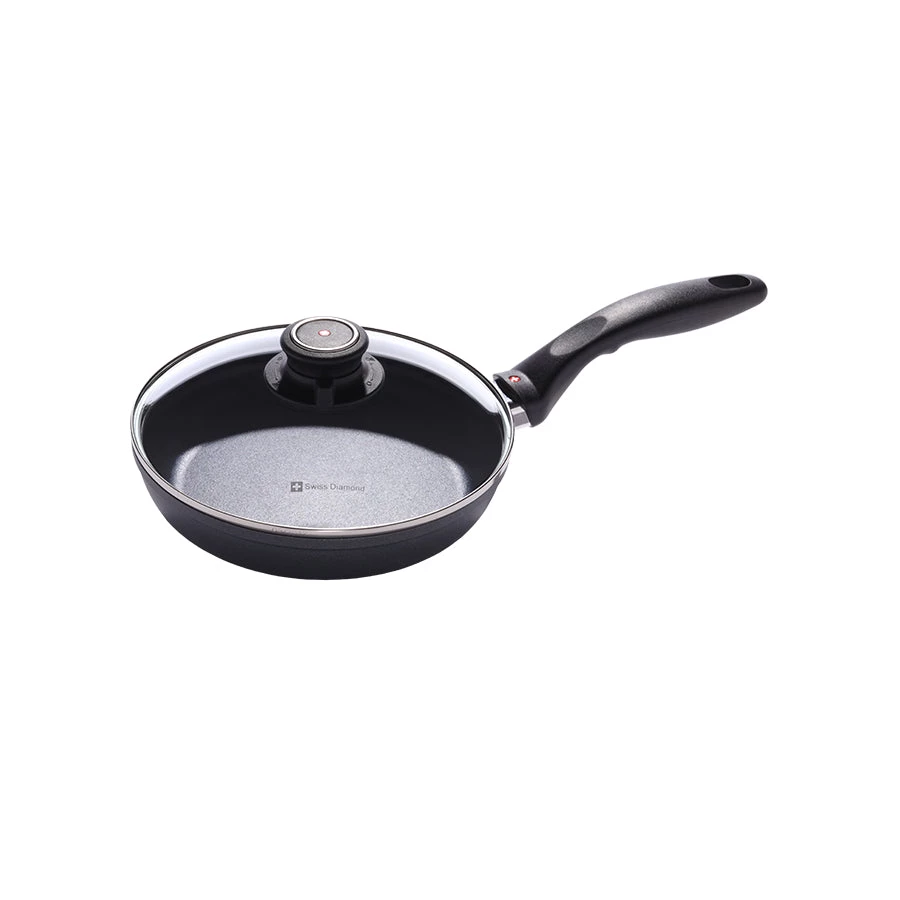 The Swiss Diamond 20cm (8 inch) Fry Pan is ideal for preparing eggs and omelets, sautéing vegetables, browning potatoes, searing small cuts of meat, and more! A heat-tempered glass is included to provide ample versatility. The incredible diamond-reinforced coating ensures effortless food release and allows home chefs to whip up delicious meals without added oil, butter, or grease. This skillet is perfect for cooking one to two servings of your favorite recipes and can be transferred to the oven as all Swiss Diamond cookware is oven-safe up to 500°F (260°C). Take your culinary creations to the next level by introducing this durable and attractive skillet to your cookware collection. – 6420c – 0 – W44