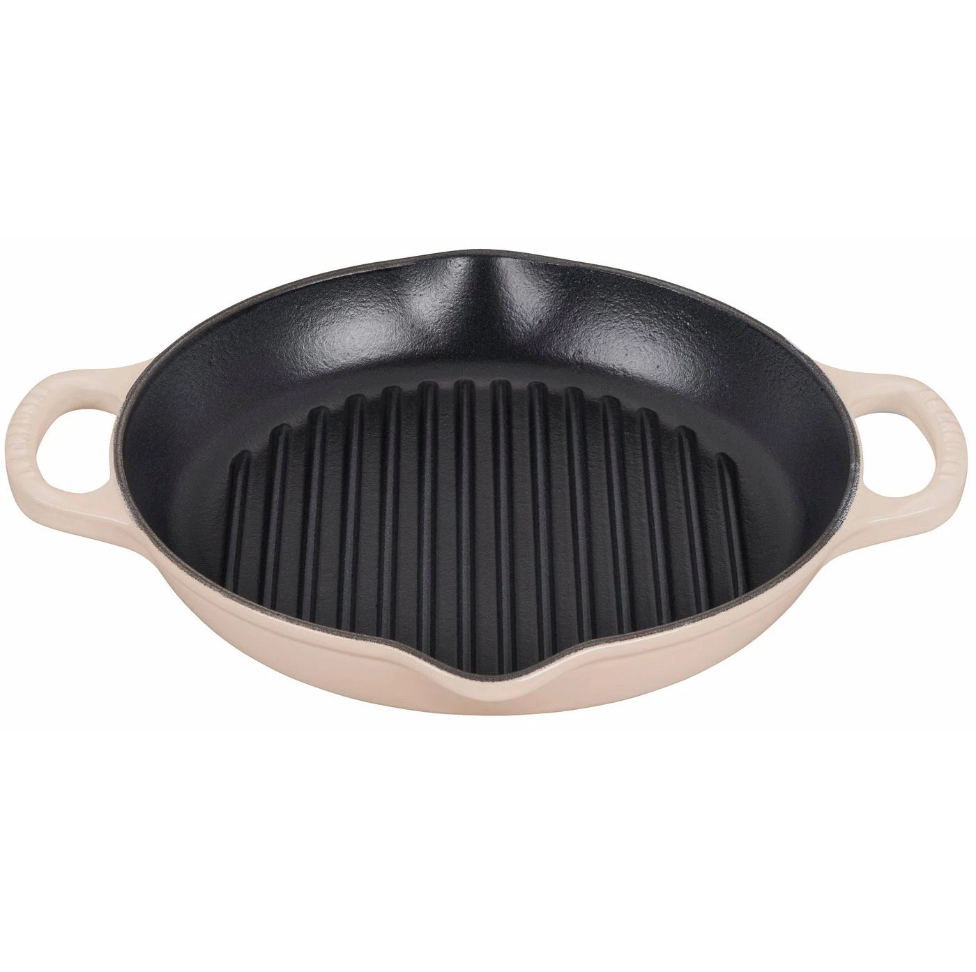 The enameled cast iron Signature Deep Round Grill brings the delicious flavor of outdoor grilling conveniently indoors. The interior surface is finished with a black satin enamel that eliminates the need for the traditional seasoning and maintenance of raw cast iron. Specially formulated for higher surface temperature cooking, the enamel develops a natural patina over time that is ideal for searing. The high ridges create perfect sear marks and allow excess fat and grease to drain away from the food. Loop handles make it easy to maneuver a full pan, and the spouts on two sides allow for drip-free pours.