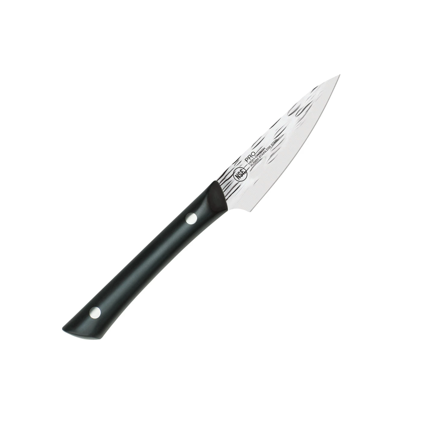 Bring professional-level performance to your kitchen with Kai PRO. NSF Certified for use in professional kitchens, Kai PRO cutlery offers a razor-sharp edge, comfortable grip, precision handling—and is built to stand up to the rigors of commercial use. Kai PRO blades are made of Japanese AUS6M stainless steel, hand sharpened and finished to a 16° cutting edge on each side—much sharper than standard Western-style knives. Our high-carbon steel offers excellent corrosion resistance, holds its edge well, then re-sharpens easily when needed. With its striking, hammered blade finish, Kai PRO is sure to be a standout in any kitchen, home or commercial. The knife’s beautiful finish isn’t just for show; it reduces drag and helps food release from the blade quickly and easily. Full-tang construction and a riveted POM handle ensure Kai PRO cutlery will provide you with a lifetime of pro-level performance.