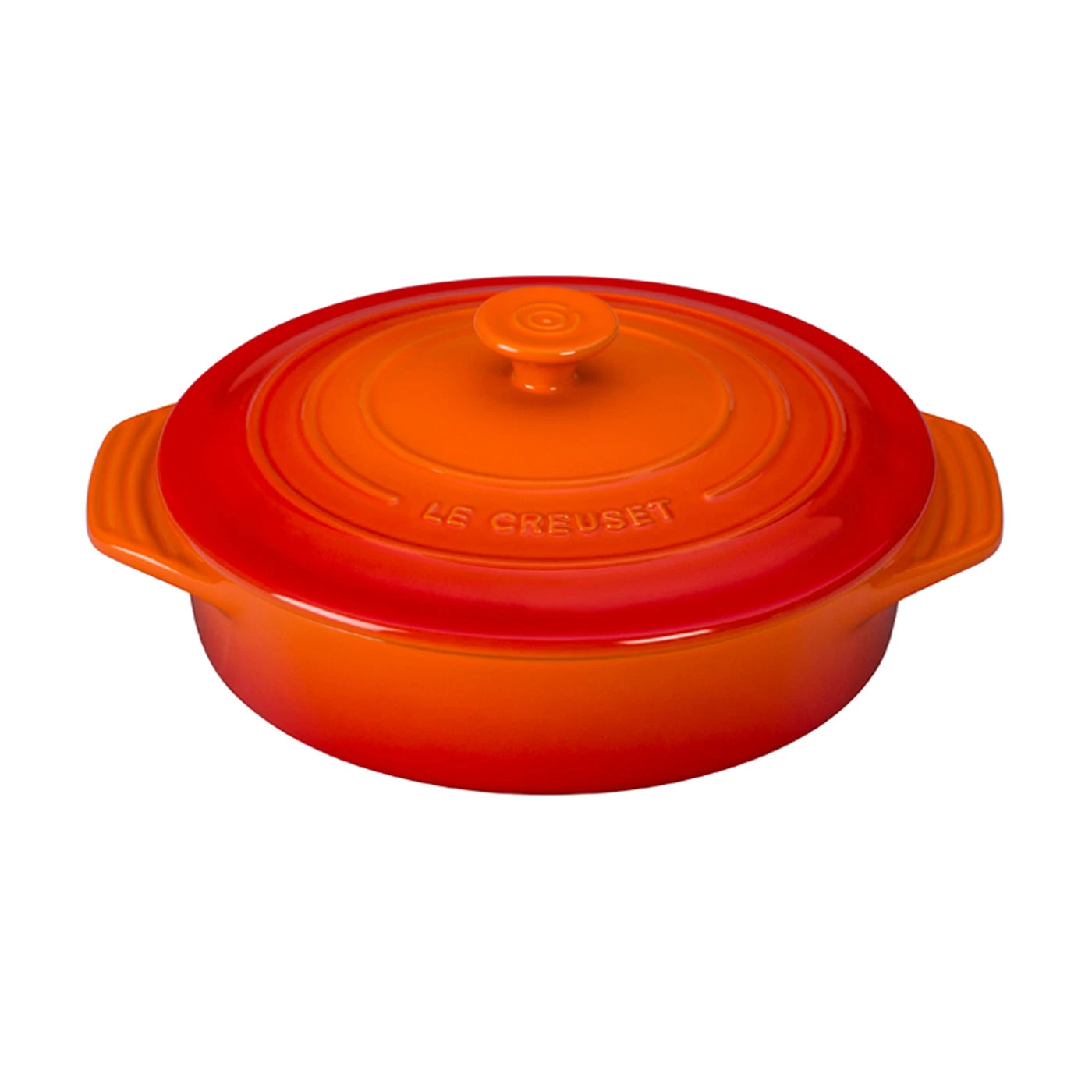 Le Creuset’s newest line of stoneware features improved performance and contemporary design. The update emphasizes our signature triple-ring detailing, making this range a lovely complement to other Le Creuset products. The enameled base minimizes moisture absorption, while lengthened handles make for easier carrying.