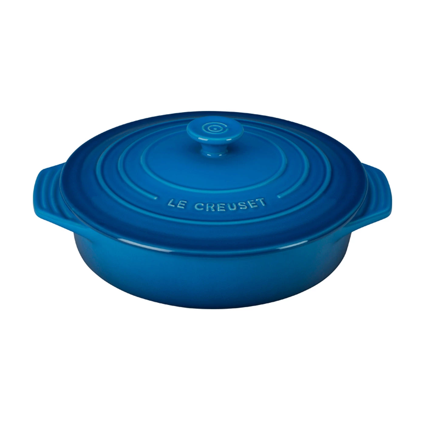 The even-heating properties of the 2 1/10 qt. round casserole create perfectly baked goods every time, perfect for casseroles or desserts.
