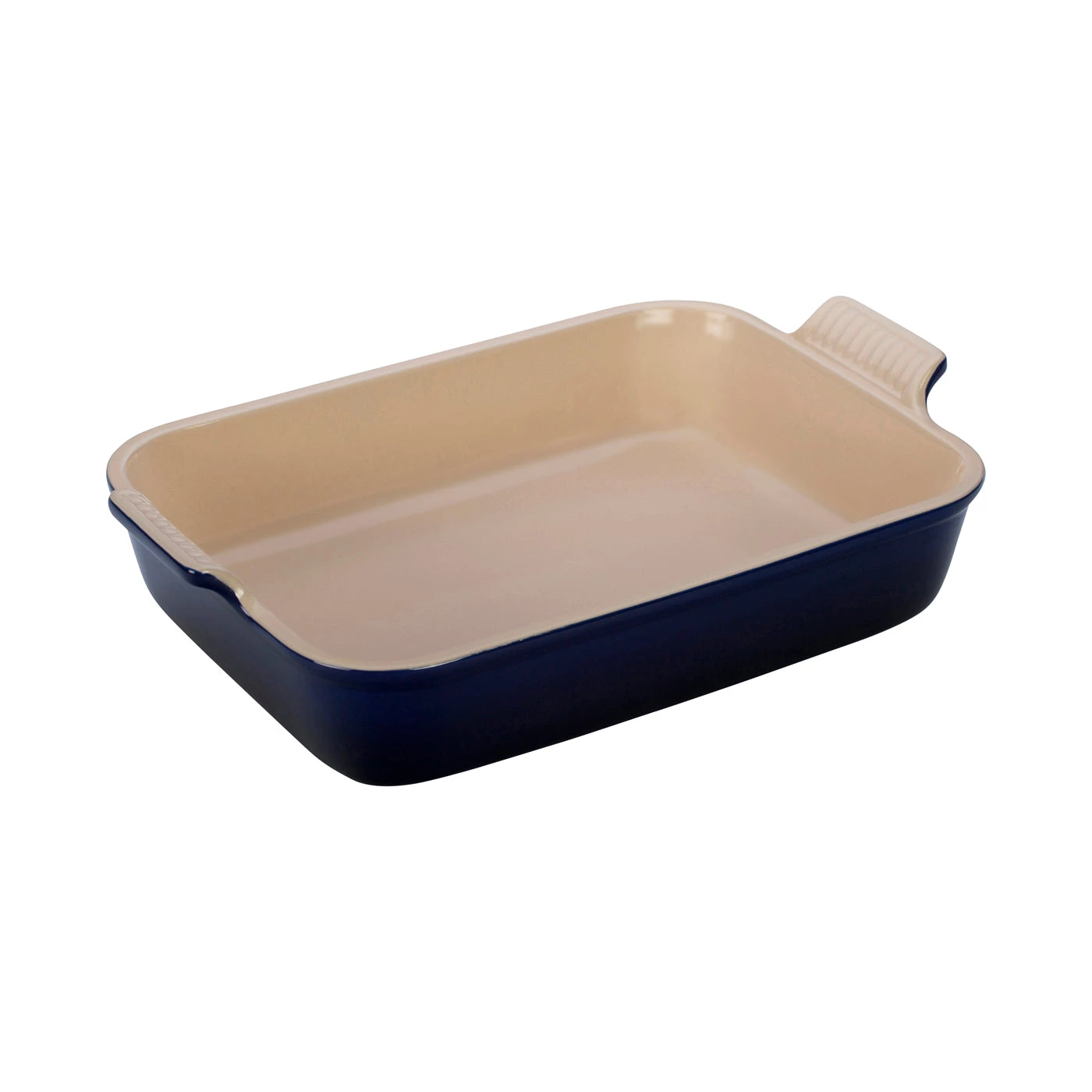 The Heritage stoneware rectangular dish is a smart solution for a variety of recipes, as well as common kitchen tasks like marinating and breading. Its deep sidewalls create ample cooking space for casserole fillings, while its stoneware construction maintains proper hot and cold temperatures for dishes prior to serving and during meals.