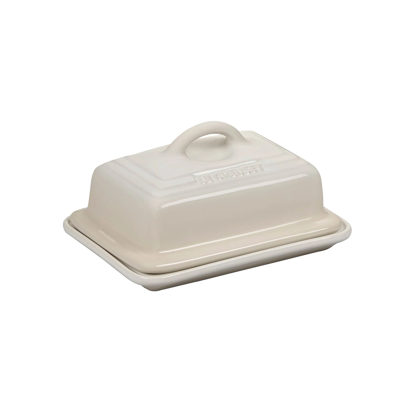 Decorative yet functional, this stoneware butter dish can go from refrigerator to microwave to table. The European style is designed to hold two sticks of butter.