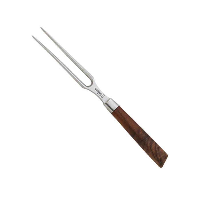 The Messermeister Royale Elite 6″ Straight Carving Fork has a beautiful California walnut burl handle. Walnut burl features a rich deep brown flared pattern and is prized for its hard, strong characteristic as a handle material. This vintage style fork is one of a kind and sure to become a treasured family heirloom. It is perfect for assisting in carving roasts and hams. Ideal for assisting a carving knife while slicing meat. One-piece, fully forged. Hand-polished “Elite” edge. Bolsterless edge. Cambered chef’s knife blade. Extra-wide chef’s knife blade. Ergonomic balance. California walnut burl handle. 100% Handcrafted in Solingen, Germany. – E/9805-6 – 1 – A87-3
