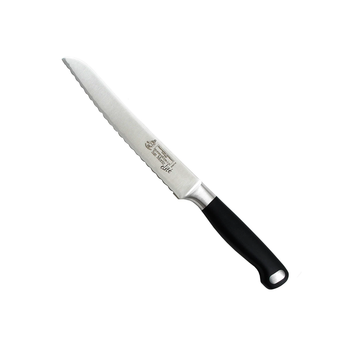 The Messermeister San Moritz Elite 6″ Reverse Scalloped Utility Knife will become your everyday go-to knife. The compact blade size and scalloped edge will allow you to use this blade to carve roasted chickens, slice hams, cheeses, soft skinned fruits and vegetables. It is great for cutting pastries, bagels and small cakes. Take it along on picnics to handle a multitude of cutting tasks. – E/2677-6 – 3 – A89-1