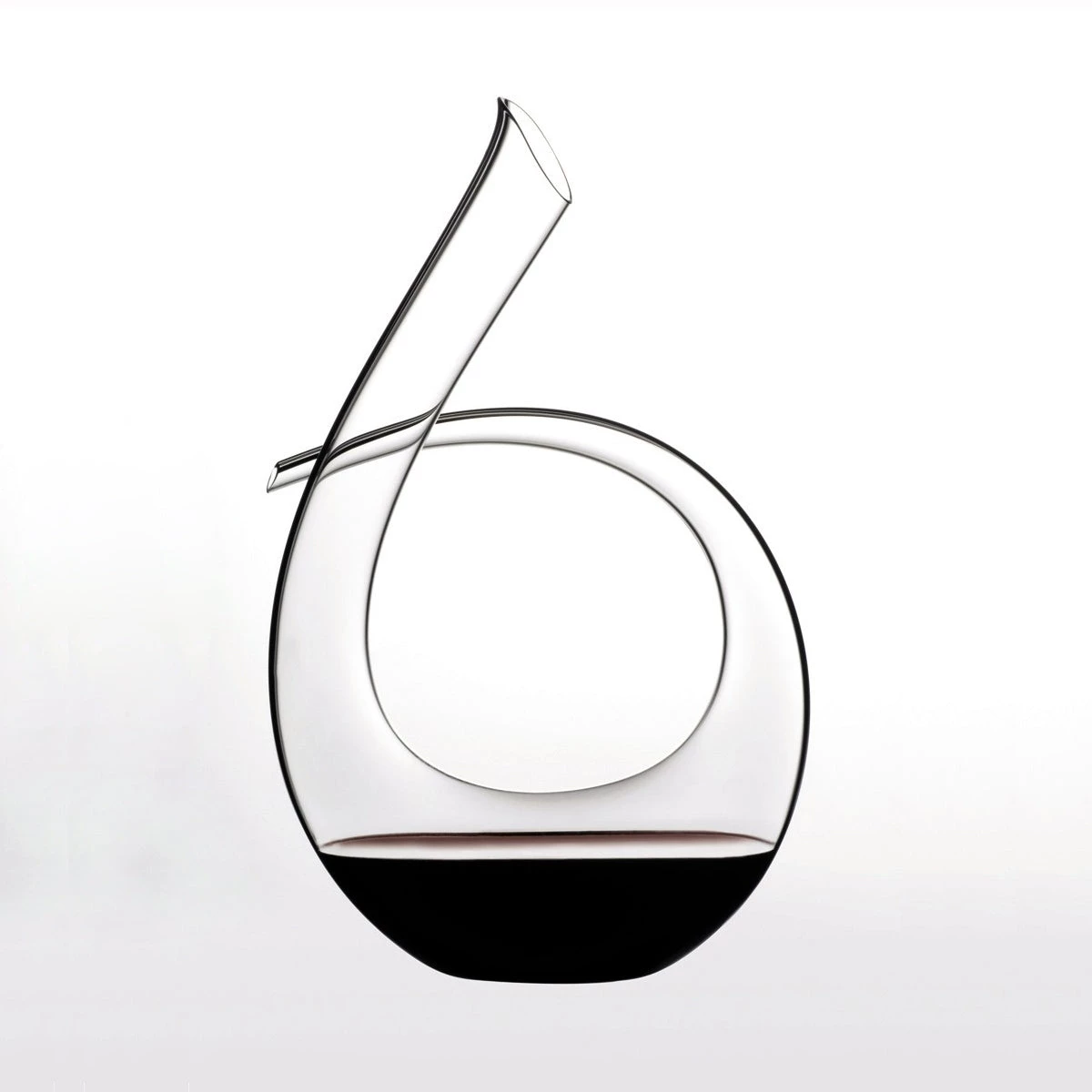 The Black Tie Decanter is ‘free blown’, meaning the glass blower forms it by hand without the aid of a mold. A rod of black crystal (colored by manganese oxide) is introduced while the glass is molten. The length of the hollow glass piece is determined by the arm span of the glass blower. Only an extremely talented glassblower can successfully sculpt these creations, and each decanter is slightly different-one of a kind. Classic, curved, and arguably crucial to wine enjoyment, Riedel’s Black Tie decanter makes decanting a joy from poured in to pour out. – 4100/23 – 1 – C46
