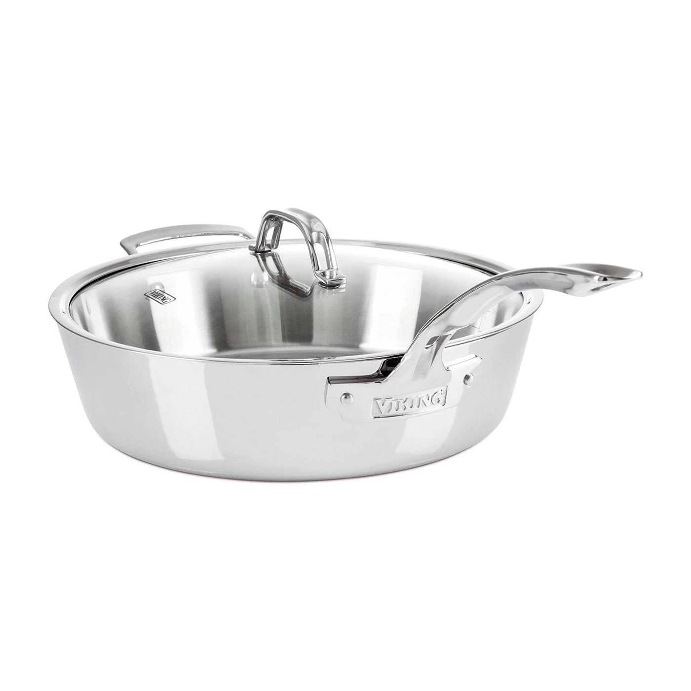 Viking Contemporary 3-Ply Cookware combines a layer of aluminum sandwiched between heavy-gauge stainless steel for superior performance. The aluminum core provides exceptional heat transfer throughout the pans, while the magnetic stainless steel exterior gives the pans durability and makes them induction capable. Featuring a seamless rim, the vented glass lids allow you to easily see the progress of your meal while reducing the chance of boil-overs. Viking Contemporary cookware combines a fashionable conic shape with signature stay-cool handles and easy to read internal volume measurements.