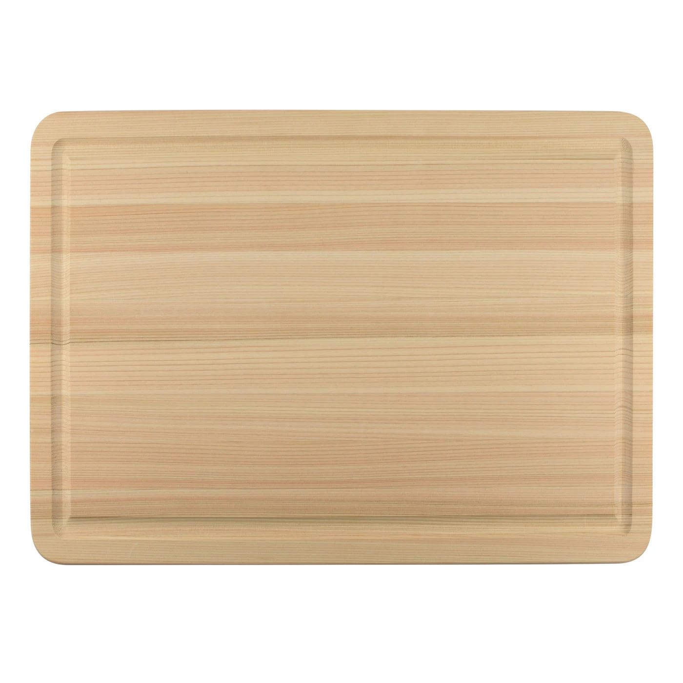Hinoki is a type of Japanese cypress renowned for its beauty as well as its delicate, natural fragrance. Used in a cutting board, this medium-soft wood “gives” as you cut, helping to preserve the edges of your fine Shun cutlery. Quite simply put, hinoki is the perfect cutting surface for all your Shun knives. This larger size offers the right surface for all general-purpose cooking tasks. This board also features a handy juice groove around the edge of the board so juice gets caught in the groove for less mess and easy clean up.