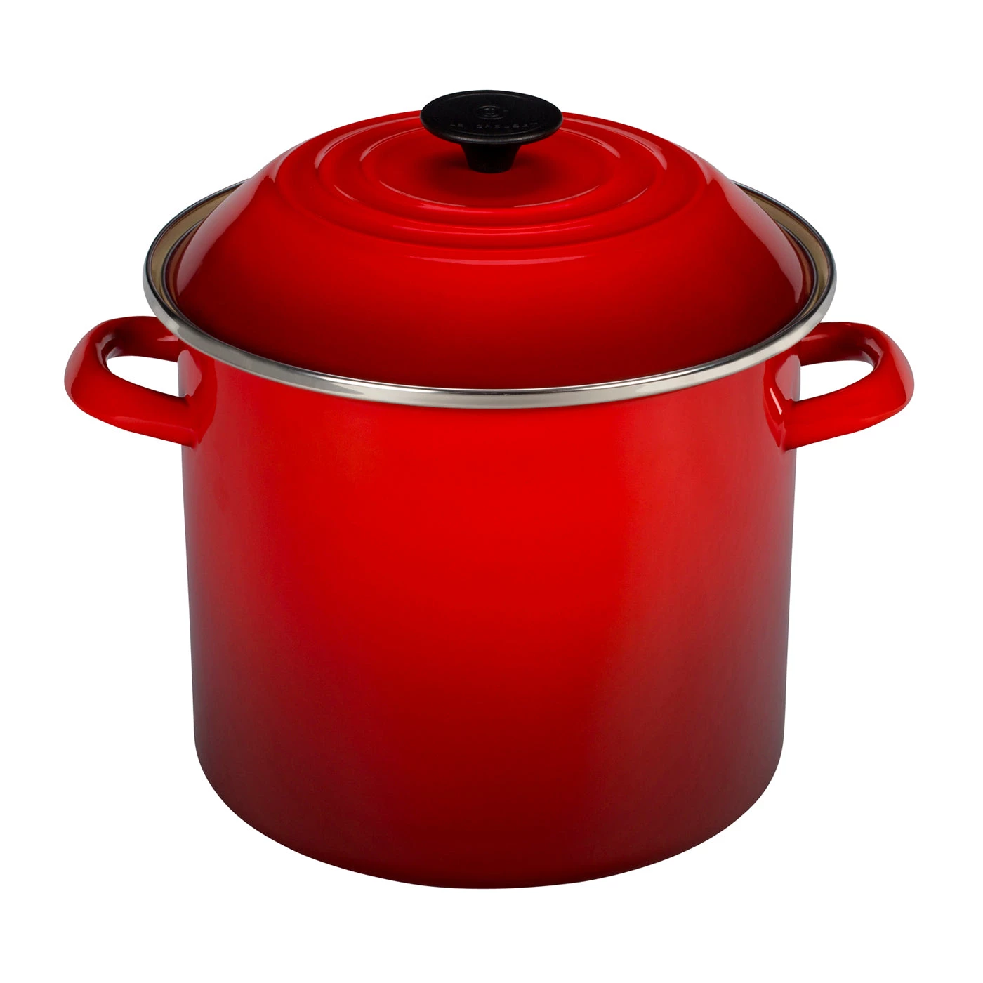 Le Creuset enamel on steel stockpots are finished in the same bold palette of signature colors as Le Creuset enameled cast iron, making them perfectly stylish complements to any combination of cookware.