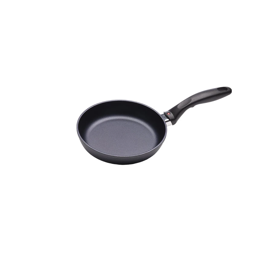 The Swiss Diamond 8 inch Fry Pan will transform your perspective on cooking. Designed with at-home cooks in mind, this one-of-a-kind skillet will provide you with an easy and healthy way to prepare your favorite recipes. The cast-aluminum body prevents hot spots and heats all contents quickly and evenly. Thousands of real diamond crystals are embedded in the coating to yield a long-lasting, naturally nonstick cooking surface that eliminates the need to use unhealthy oils. Clean-up is a breeze with warm, soapy water and a gentle sponge. Heat-tempered glass lid sold separately. For an induction-compatible version, please browse the Swiss Diamond induction collection. – 6420 – 4 – W31/SR