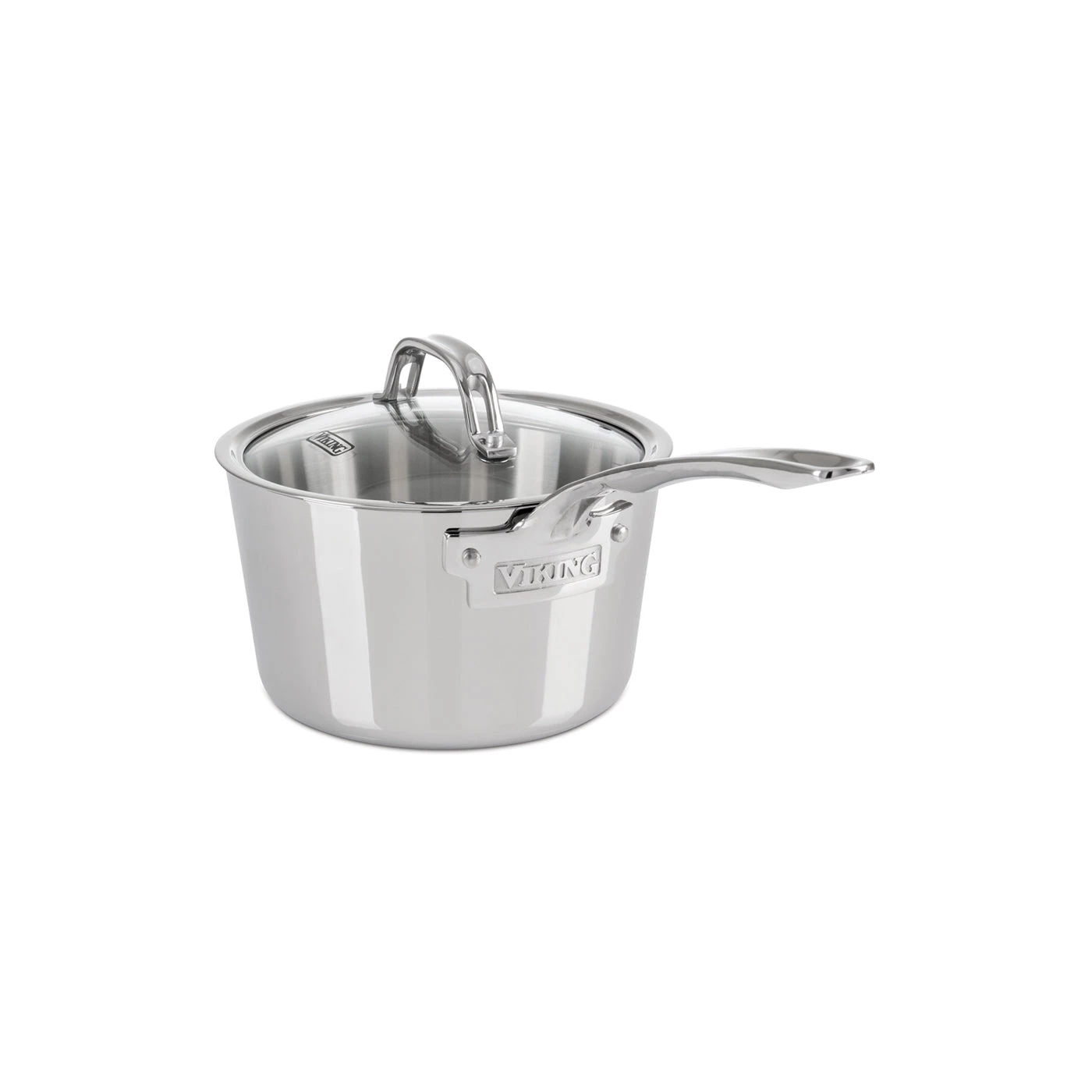 Viking Contemporary 3-Ply Cookware combines a layer of aluminum sandwiched between heavy-gauge stainless steel for superior performance. The aluminum core provides exceptional heat transfer throughout the pans, while the magnetic stainless steel exterior gives the pans durability and makes them induction capable. Featuring a seamless rim, the vented glass lids allow you to easily see the progress of your meal while reducing the chance of boil-overs. Viking Contemporary cookware combines a fashionable conic shape with signature stay-cool handles and easy to read internal volume measurements.