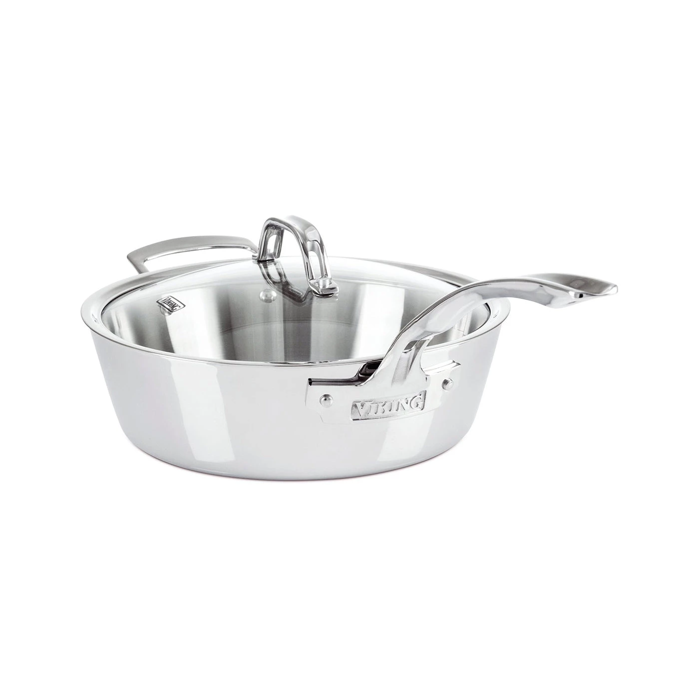 Viking Contemporary 3-Ply Cookware combines a layer of aluminum sandwiched between heavy-gauge stainless steel for superior performance. The aluminum core provides exceptional heat transfer throughout the pans, while the magnetic stainless steel exterior gives the pans durability and makes them induction capable. Featuring a seamless rim, the vented glass lids allow you to easily see the progress of your meal while reducing the chance of boil-overs. Viking Contemporary cookware combines a fashionable conic shape with signature stay-cool handles and easy to read internal volume measurements.