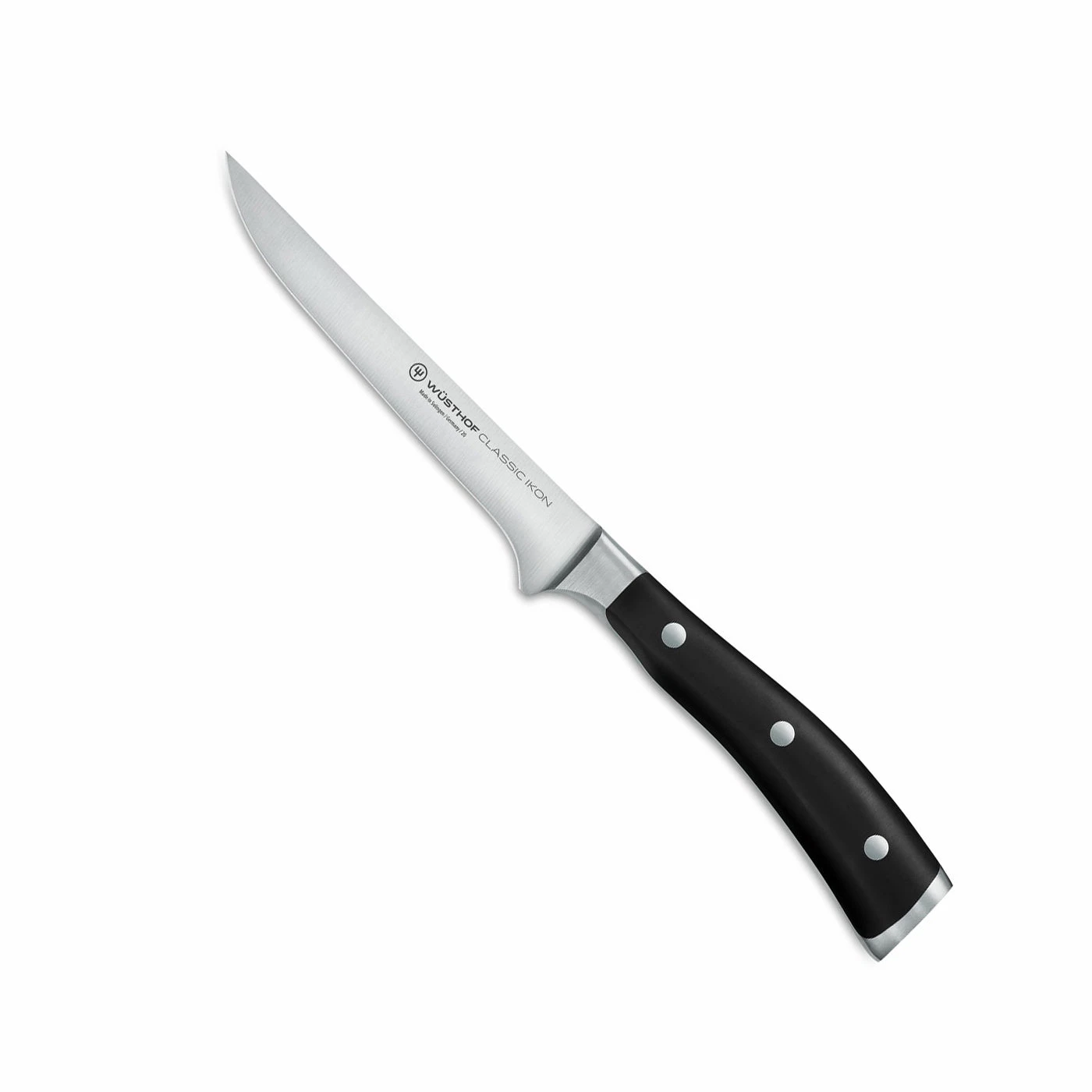 De-boning chicken or ham, trimming fat and sinews. The tapered, pointed blade is a necessity for working closely around joints.